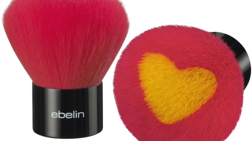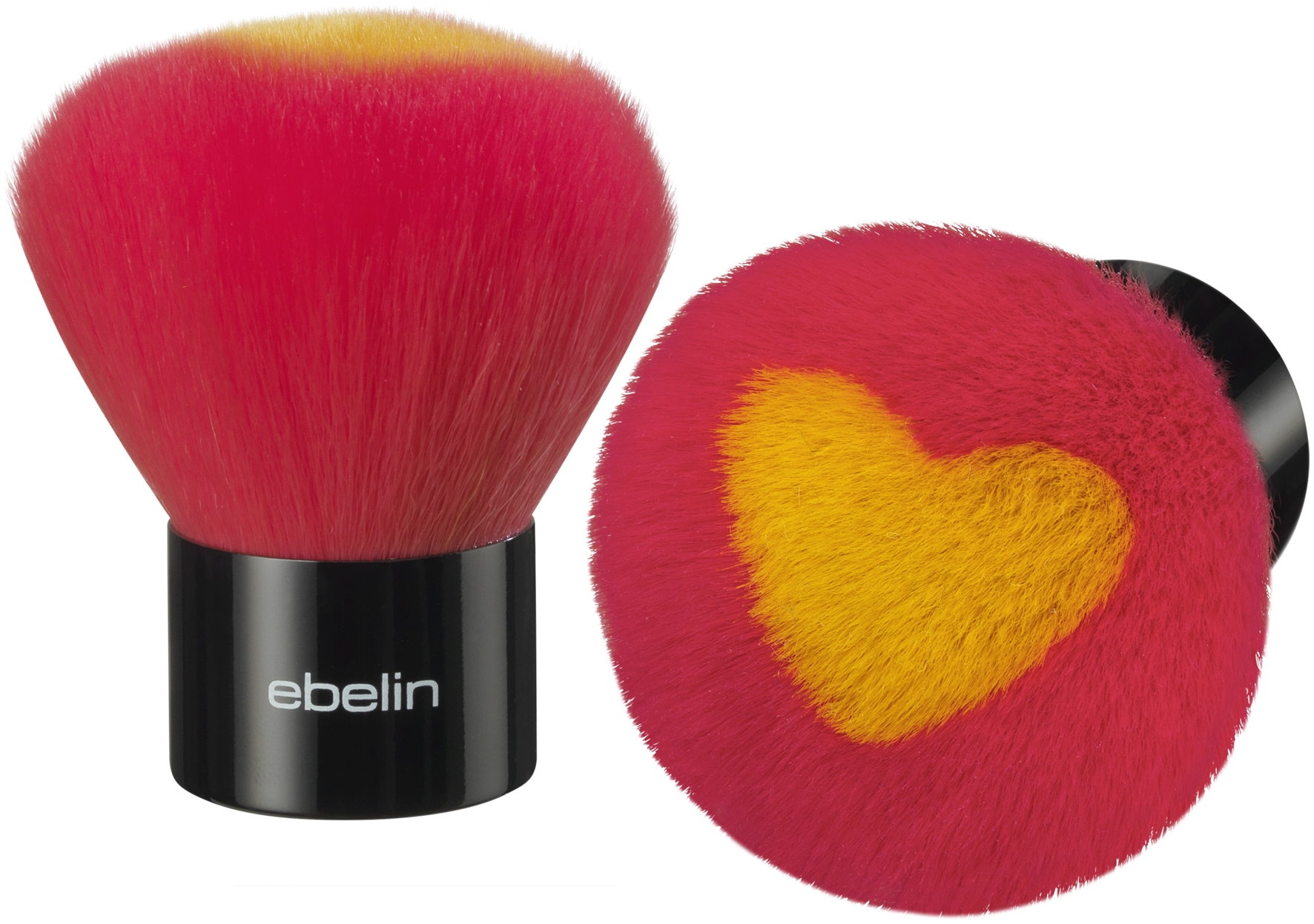 Der ebelin Kabuki-Pinsel im süßen Herz-Design ist aufgrund seines hochwertigen Synthetikhaars und seines speziellen Haarschnitts für ein optimales Auftragen von Puder, Rouge und Bronzer geeignet.