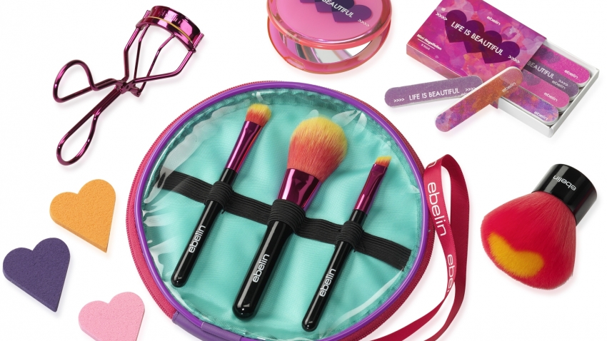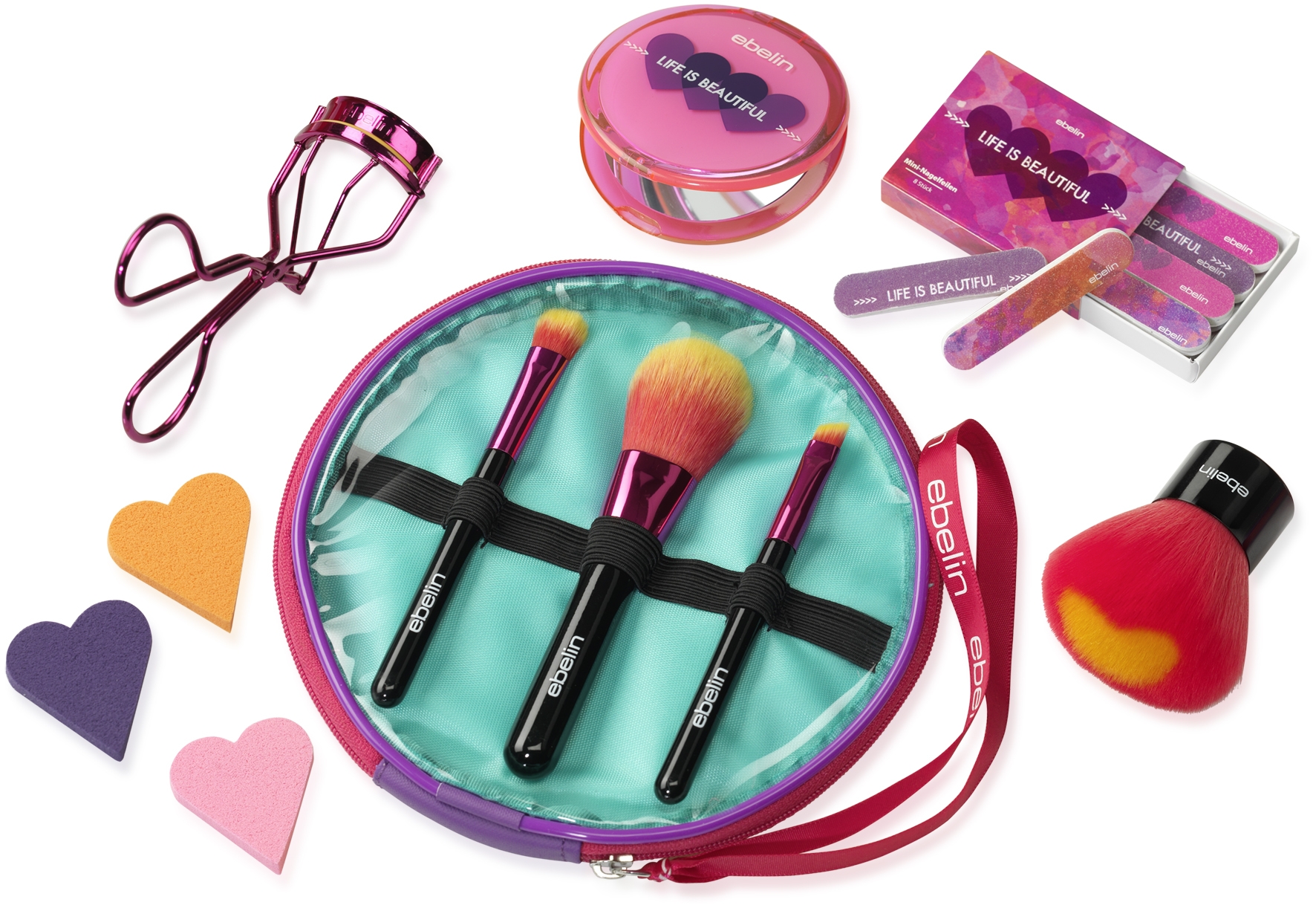 Um  Unser  Makeup Farbenfroh gestalten zu können hat  ebelin mit der "Life is Beautiful"  auch gleich unser Werkzeug in einer Farbenfrohen Limited Edition als kleinen Farbtupfer in unsere Bäder und Schminktische gebracht. So lässt sich der triste Winter doch gleich viel besser ertragen.